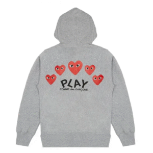 Original price was: $175.00.$124.00Current price is: $124.00.CDG Play Grey Multi Logo Zip Hoodie