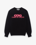 Crafted from high-quality cotton, the sweatshirt offers a soft, breathable, and durable fabric that ensures all-day comfort. The striking pink logo boldly contrasts against the deep black background, giving the piece a unique and stylish edge that is unmistakably CDG. Perfect for layering or wearing on its own, this sweatshirt brings together functionality and fashion effortlessly.