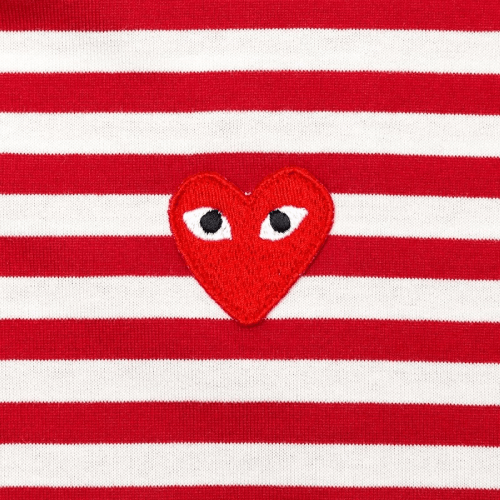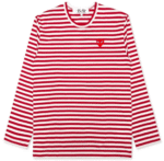 The CDG PLAY Big Red Heart Striped L/S T-Shirt (White/Red) is a perfect blend of comfort, modern design, and timeless style. This long-sleeve T-shirt brings a fresh and iconic look with its classic red and white stripes, making it a standout piece in any casual or streetwear outfit. The bold red heart emblem on the chest adds a signature touch that instantly elevates its appeal. Made from soft, breathable cotton, it ensures a comfortable wearing experience whether you’re out for the day or relaxing at home.