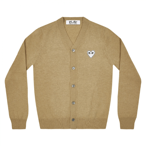 CDG Play Cardigan White Heart Natural Series Camel is the perfect blend of sophistication, comfort, and iconic streetwear style. Designed by the renowned Japanese fashion house Comme des Garçons, this men’s cardigan is part of the coveted Natural Series collection—offering a warm, earthy tone in an elegant camel color that complements any wardrobe.