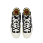 Crafted with premium canvas, durable rubber soles, and reinforced stitching. The CDG Play Converse Polka Dot Red Heart Chuck Taylor All Star ’70 High Sneakers offer long-lasting wear without compromising on aesthetics. Beyond their eye-catching design. These sneakers reflect the true spirit of collaboration between two cultural icons: Comme des Garçons Play and Converse. Whether paired with casual jeans, streetwear fits. Perfect for those who value comfort, quality, and creative design, this sneaker is more than footwear—it’s a statement piece.